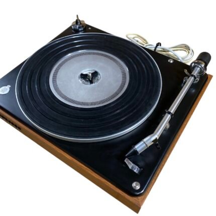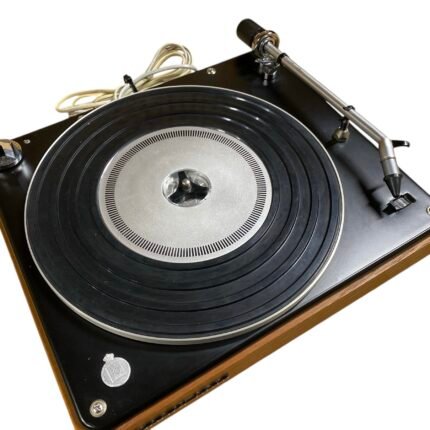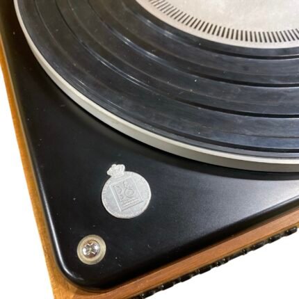 Derived from the earlier “stereo record player”, uses the SP series pickup, normally SP 6 or SP 7. Can be fitted with an optional preamplifier/RIAA filter panel for use with older equipment or Beomasters such as Beomaster 900. The motor is synchronous, speed regulation is achieved using an axial centrifugal regulator, which is user adjustable to alter the pitch. A strobe ring on the platter hub allows the correct speed to be adjusted, this works at 33RPM. A 78RPM speed is provided, but a special wide radius pickup is needed to use this. There are no automatic functions, though a cueing lever is provided.
