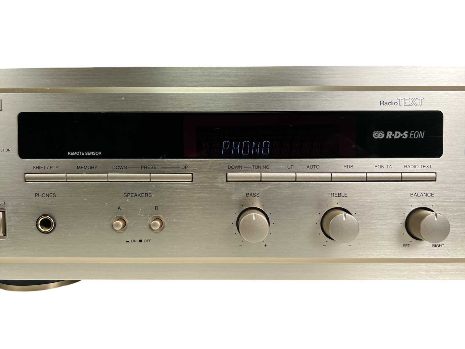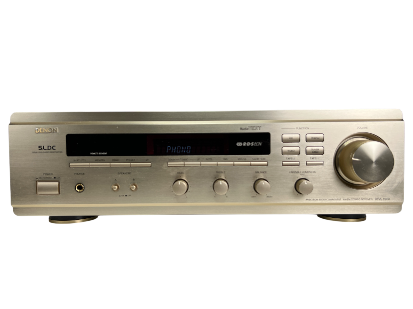 Denon DRA-1000 er en solid stereo receiver fra slutten av 1990-tallet, laget i en periode der Denon fortsatt prioriterte rene stereoprodukter parallelt med hjemmekino. Modellen kombinerer en kraftig og stabil forsterkerdel med analog FM/MW-tuner og et ryddig, funksjonelt frontpanel.