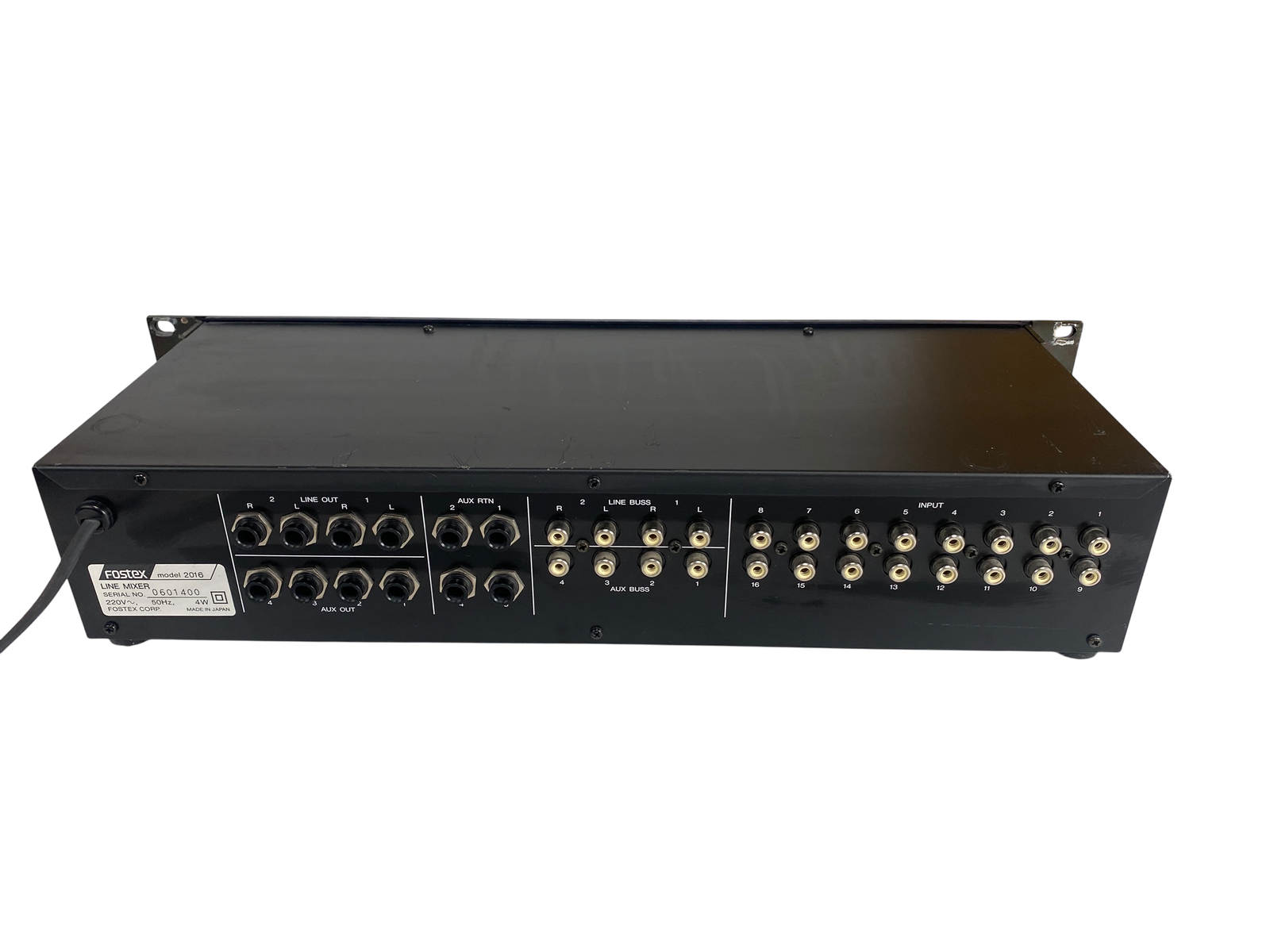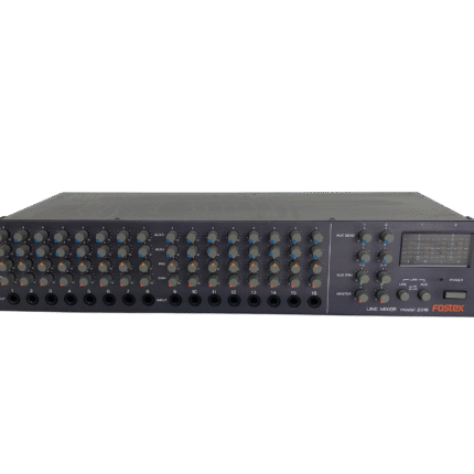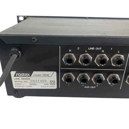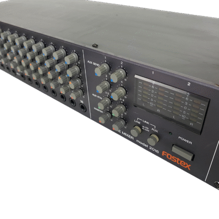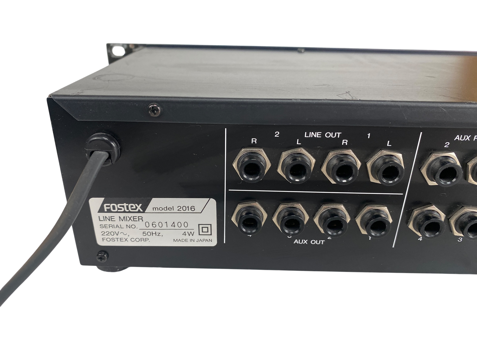 The Fostex 2016 is a 16-channel, rackmountable analog line mixer designed for studio and live applications. It features 16 line-level inputs with level and pan controls, four auxiliary sends, and a clean, transparent signal path. Housed in a 2U rack case, it offers flexible routing options, including the ability to split into two stereo mixers, making it ideal for keyboard sub-mixing, effects returns, or expanding auxiliary sends.