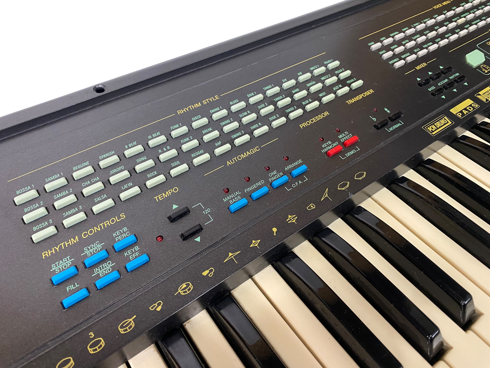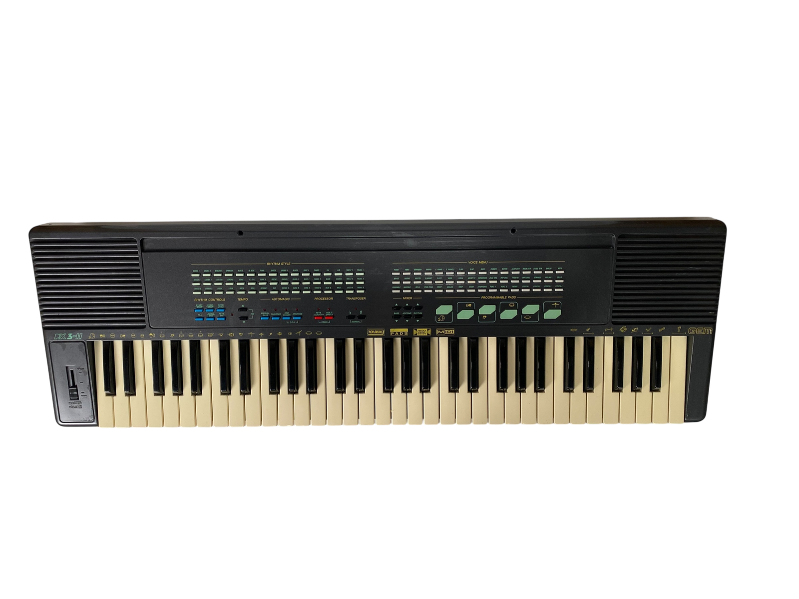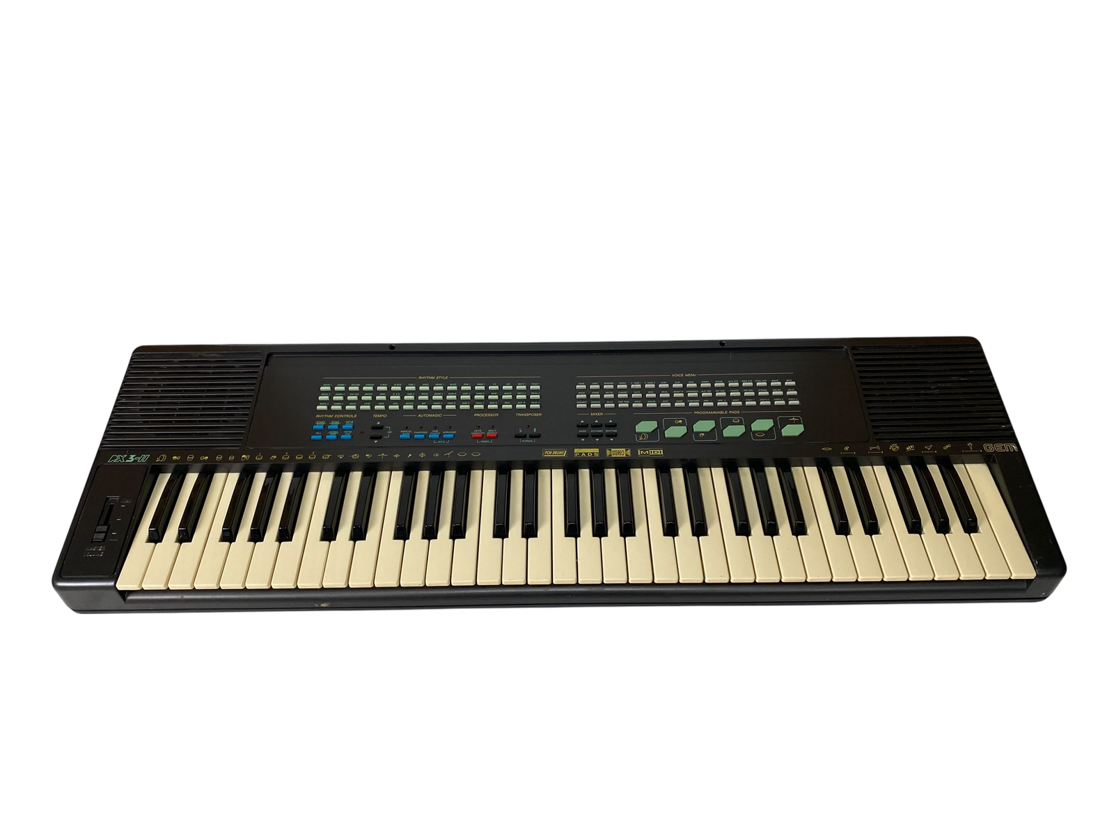 Sjarmerende preset-keyboard fra sent 80-tall, med MIDI inn/ut, RCA L/R og jack. Strømforsyning inkludert.