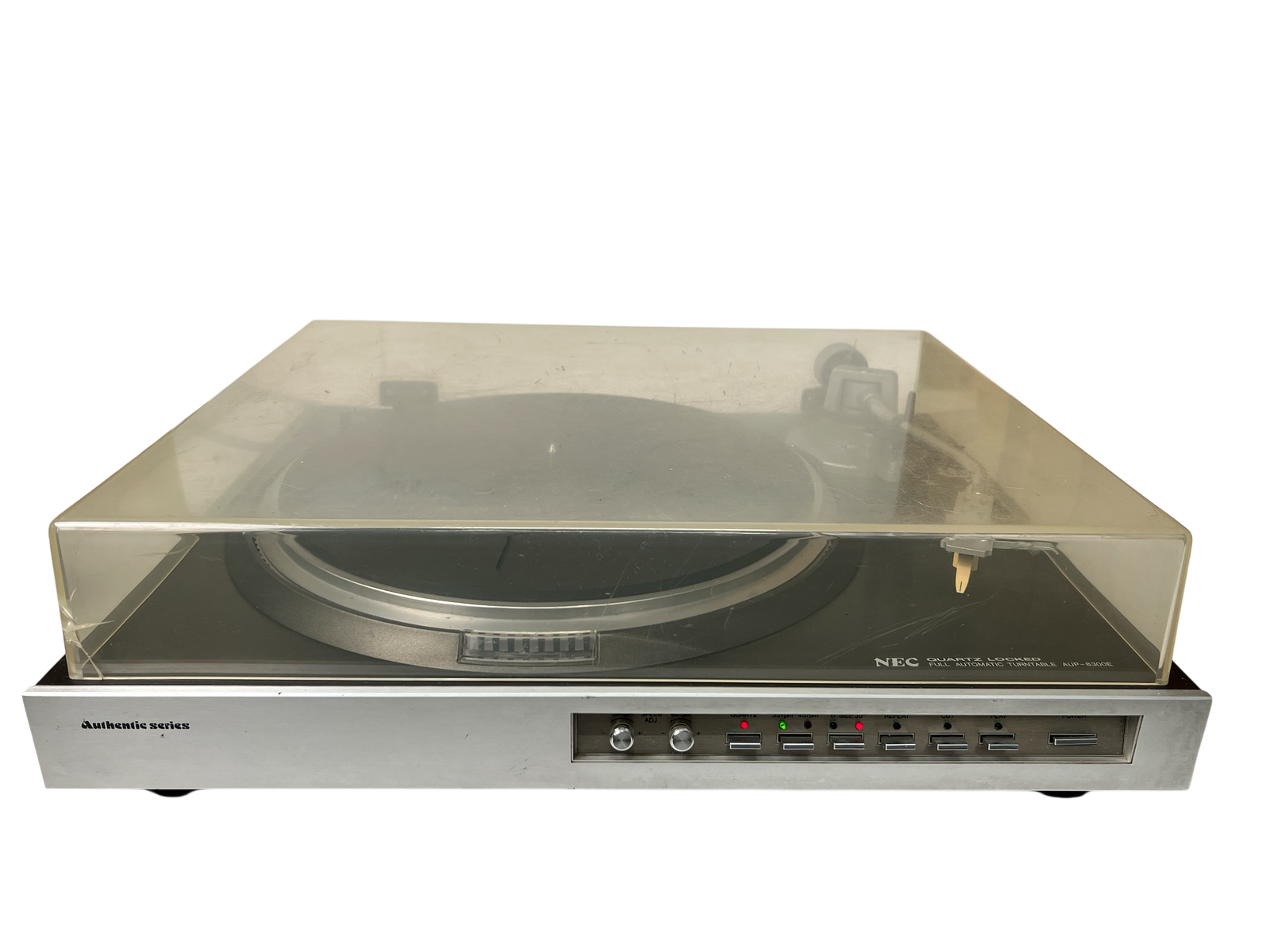 NEC AUP-8300E – en platespiller fra slutten av 1970- / tidlig 1980-tall, utviklet i perioden da NEC leverte seriøse OEM- og egenmerkede hi-fi-komponenter for det japanske markedet. Spilleren er bygget rundt en quartz-styrt direct drive-motor og har helautomatisk funksjon, med fokus på stabil hastighet og driftssikkerhet.