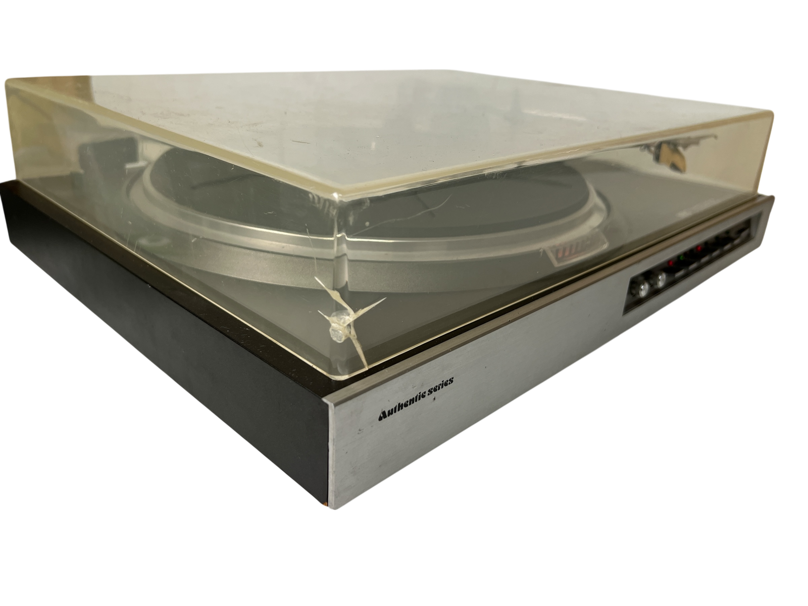 Slitent og misfarget lokk – ellers helt i orden. Leveres med Ortofon TM 7 pickup, en velrenommert MM-pickup som ofte regnes som forgjengeren til dagens Ortofon 2M Red. TM 7 er kjent for balansert og presis lydgjengivelse, og ny stift kan fortsatt skaffes på nettet om man ønsker å bytte den (brukstid på den som sitter på er uviss, men den låter veldig bra).