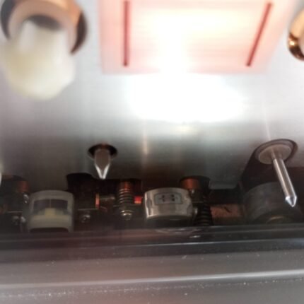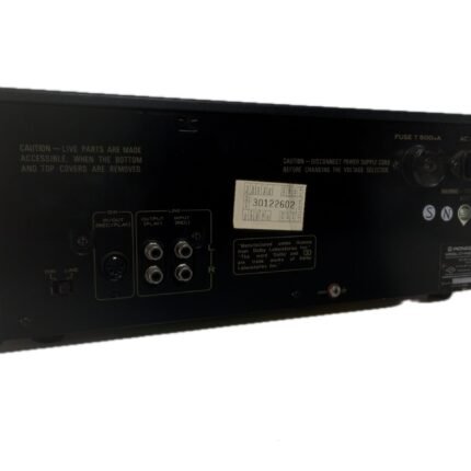 Other features include an electronically controlled DC servomotor and electronic muting for silent mode change, hard Permalloy solid recording/playback head, Ferrite erase head, tape selector, switch for standard LH tape, Cr02 and Ferrichrome, and a Dolby indicator light.