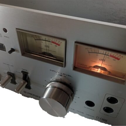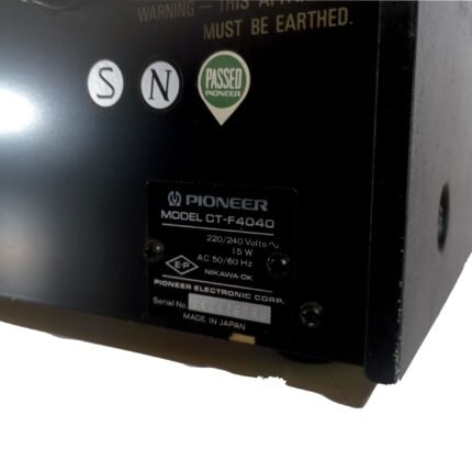 The Pioneer CT-F4040 is a full auto stop, stereo cassette deck with unique vertical cassette holder and oil-damped, sliding compartment door. The compartment is illuminated for easy view of the cassette at all times and features a special marker line to warn of tape end.