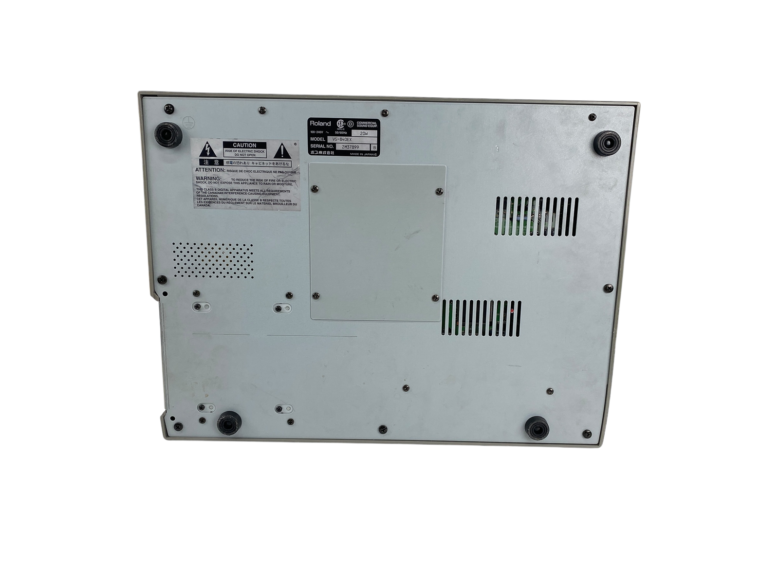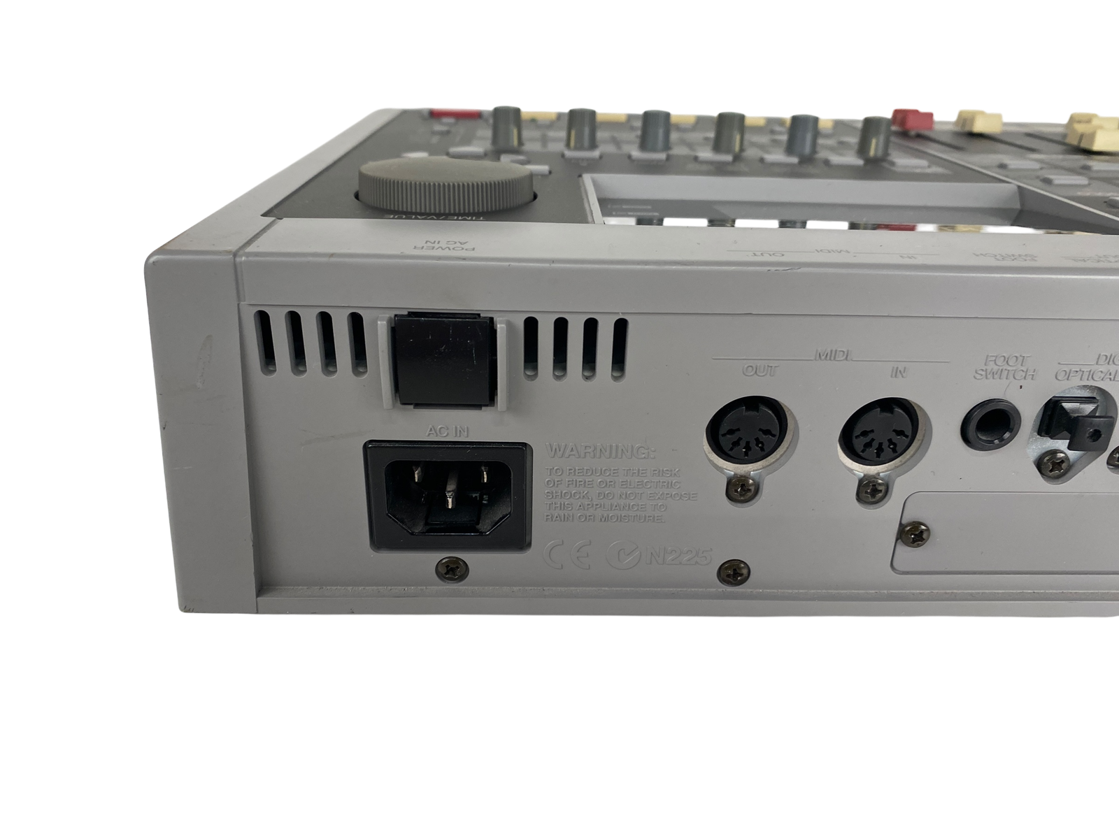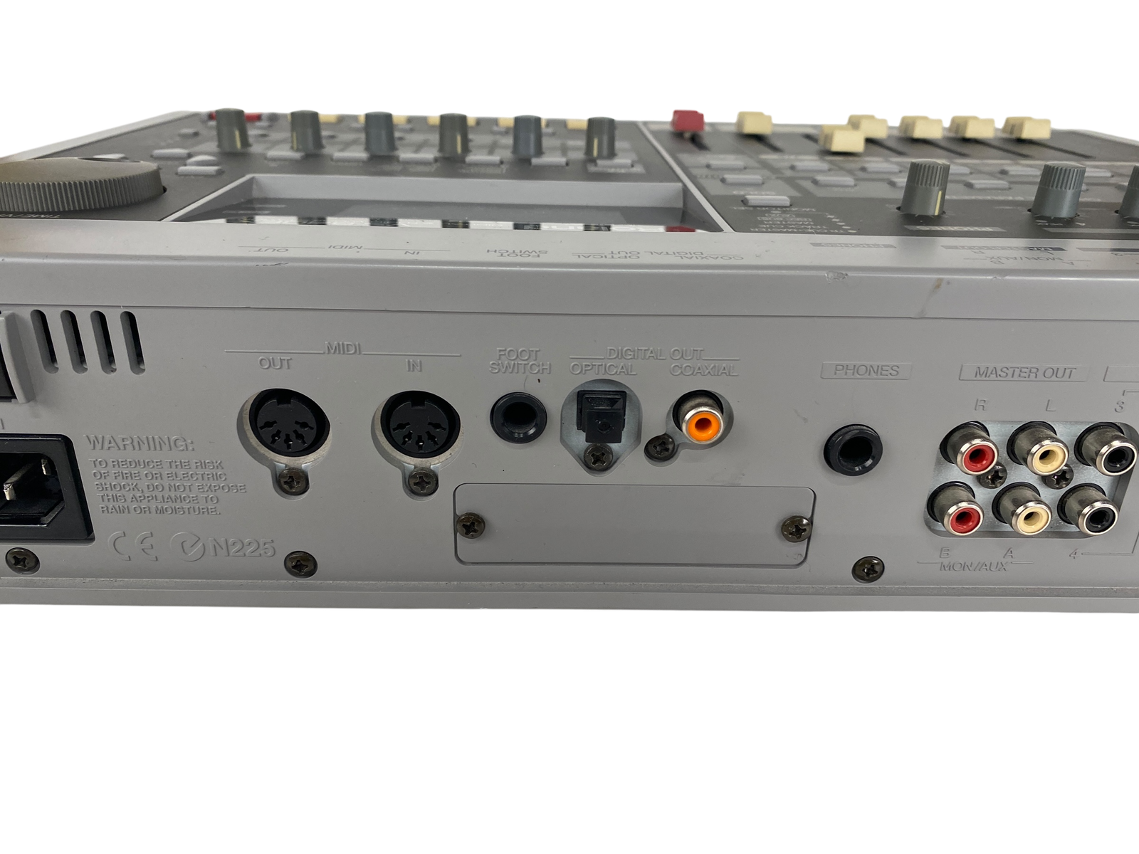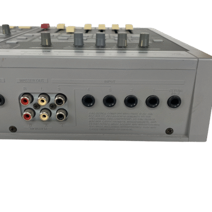 8-track digital recording workstation, 4-track simultaneous recording, 250MB Zip drive, 200 songs per disk, 64 virtual tracks (8 tracks x 8 V-tracks), 16-bit audio, 44.1kHz sampling rate, 2-band EQ per channel, 2 effects processors, MIDI in/out, SCSI port, 1/4″ guitar input, RCA inputs/outputs, headphone jack, 12V DC power, weight 4.5 kg.