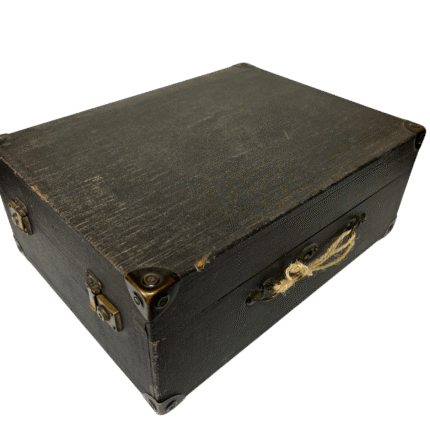 Kassa er noe slitt. Håndtaket er blitt «erstattet» på et tidspunkt.
