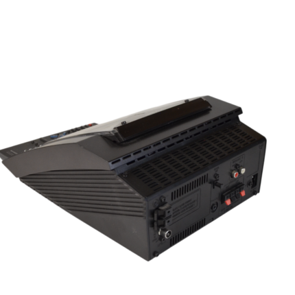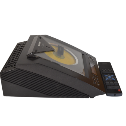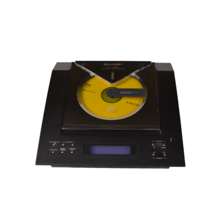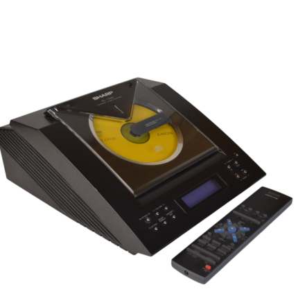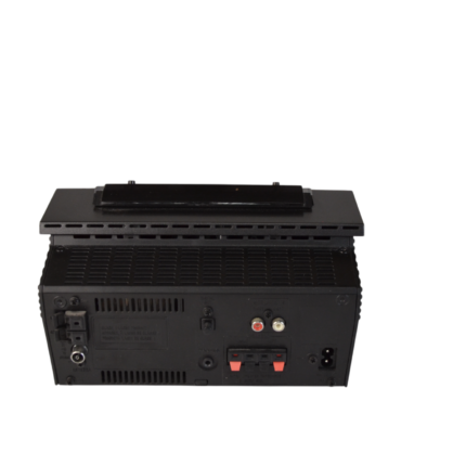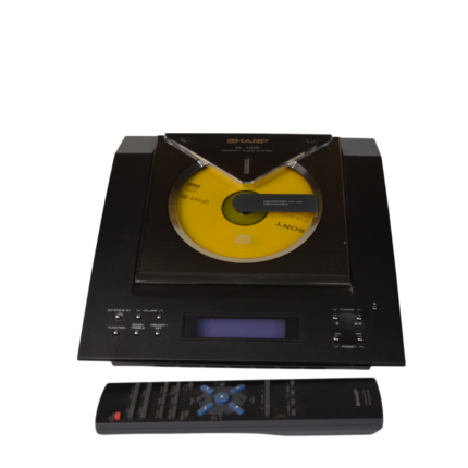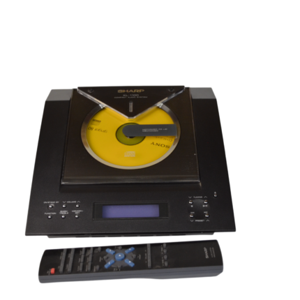 The Sharp XL-1100 is a compact audio system from the early 2000s, designed as a desk-shaped mini system for home use. It features a sleek black design with an integrated CD player, AM/FM tuner, and a built-in amplifier delivering 2 x 20 watts of power. The system includes two speakers, with dimensions of approximately 14 x 18 x 17 cm (WxHxD) each, while the main unit measures about 23 x 13 x 29 cm. It supports playback of standard CDs (12 cm and 8 cm) and has a digital output socket for CD audio, along with video/auxiliary input sockets for connecting external devices. The speaker system consists of a tweeter, woofer, and bass reflex duct for enhanced sound. Additional features include a headphone socket, FM stereo mode with an indicator, and a remote control (model RRMCG0031SJSB, requiring 2 AAA batteries). It operates on AC 230V, 50 Hz, consuming 30W when powered on. This system was marketed as a versatile, space-saving audio solution for small rooms, offering decent sound for casual listening.