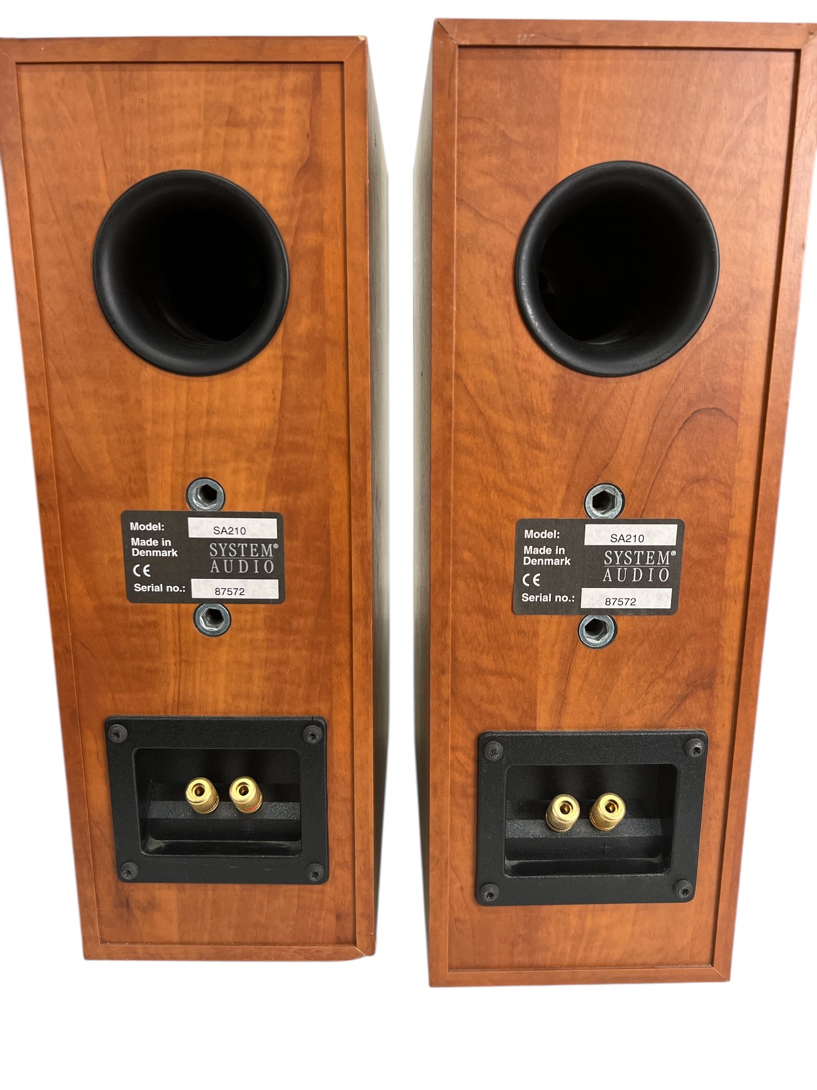 System Audio SA210 er kompakte hi-fi-høyttalere fra danske System Audio, kjent for fokus på hurtig respons og presis gjengivelse. Modellen er typisk for produsentens filosofi: slank konstruksjon, lettdrevne elementer og et balansert lydbilde som fungerer godt i mindre til mellomstore rom. Egner seg godt både til stereooppsett og som del av et mindre anlegg.