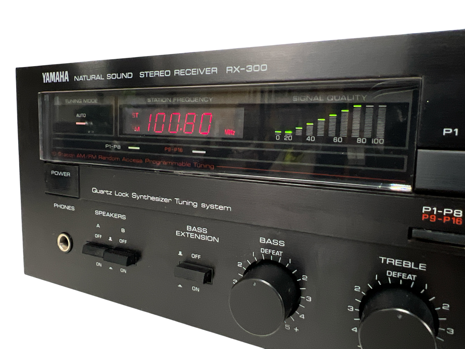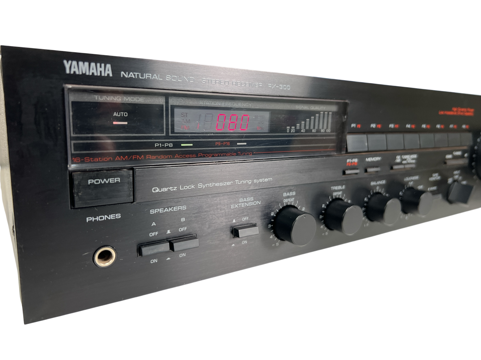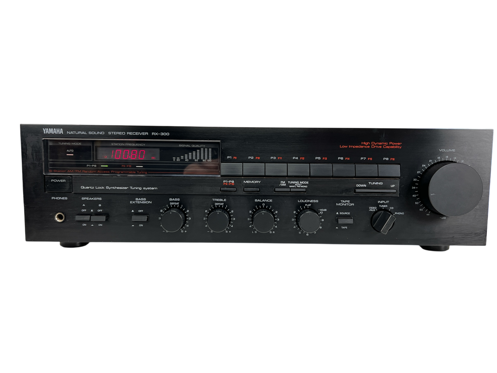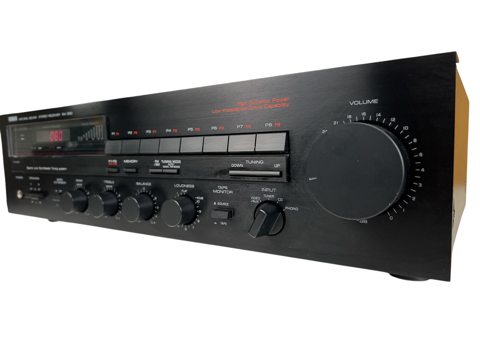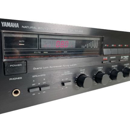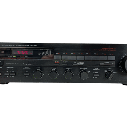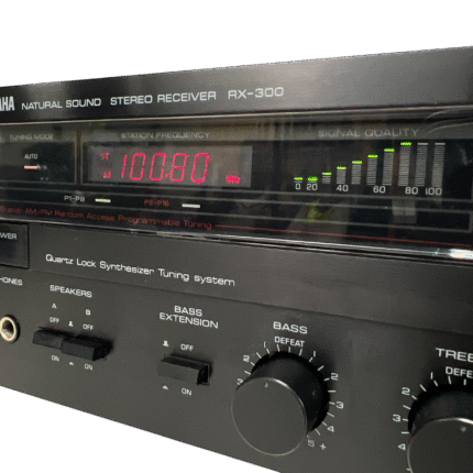 RX-300 kombinerer integrert forsterker og FM/MW-tuner i et klassisk 80-tallsdesign, med justerbar loudness og Bass Extension-funksjon – typisk Yamaha-tenkning der brukeren selv får kontroll over klangbalansen. En fin representant for hverdags-hi-fi fra en tid da stereoanlegget var fast inventar i stua.